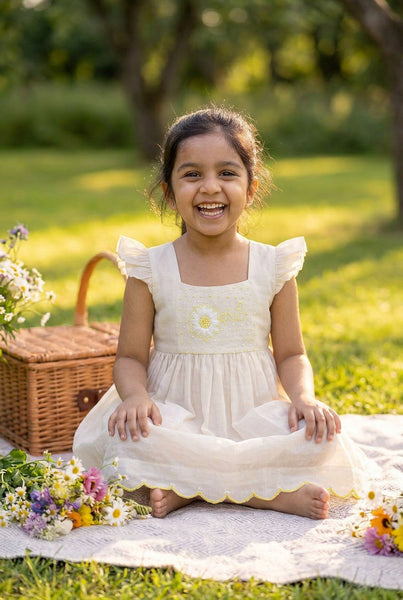 Bunny Tie Scallop Dress- Daisy