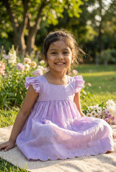 Bunny tie &All Things Fancy go a long way back. Probably it’s one of our oldest product launches & we can’t stop loving the style. We have done it in checks, in cottons, in Khadis & finally we took it formally by using Handwoven Maheshwari silk cotton & embroidered the hemline very slightly heavy &with silver & gold zardozi.We thought why not make some smart frocks for weddings other special occasions this one absolutely fitted the brief. Fabric Details- Handwoven Maheshwari Silk Cotton, lined with voil.