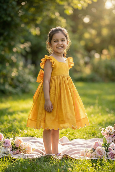 Bunny tie &All Things Fancy go a long way back. Probably it’s one of our oldest product launches & we can’t stop loving the style. We have done it in checks, in cottons, in Khadis & finally we took it formally by using Handwoven Maheshwari silk cotton & embroidered the hemline very slightly heavy &with silver & gold zardozi.We thought why not make some smart frocks for weddings other special occasions this one absolutely fitted the brief. Fabric Details- Handwoven Maheshwari Silk Cotton, lined with voil.