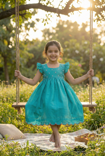Bunny tie &All Things Fancy go a long way back. Probably it’s one of our oldest product launches & we can’t stop loving the style. We have done it in checks, in cottons, in Khadis & finally we took it formally by using Handwoven Maheshwari silk cotton & embroidered the hemline very slightly heavy &with silver & gold zardozi.We thought why not make some smart frocks for weddings other special occasions this one absolutely fitted the brief. Fabric Details- Handwoven Maheshwari Silk Cotton, lined with voil.