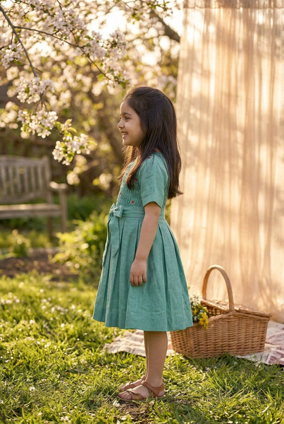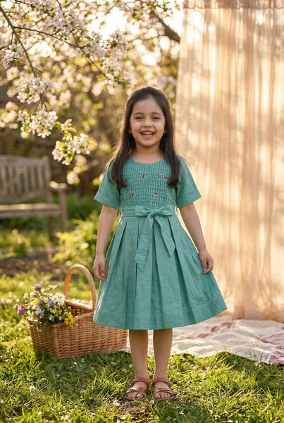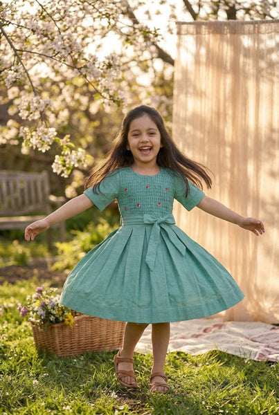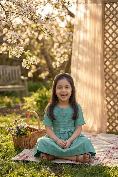 We love all things “Dreamy” & “Vintage” Frenchknot embroidery screams out that loud. This series of inhouse hand embroidered dresses is very close to our heart . We have worked hard at keeping it classic, vintage & acontemporary all at the same time.The dress is first machine smocked with fabric manipulation techniques & then hand embroidered with french knot roses then stitched to perfection. A master piece that’s not to miss & can’t be missed 🙌!! The dress is made in handwoven Khadi.