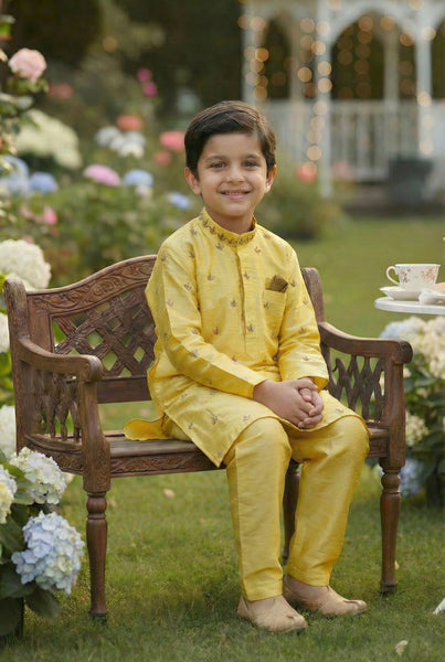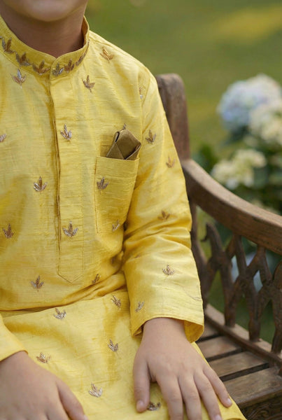 We as Indians truly adore & admire all things Indian. Our art forms are proof of that. If there weren’t any buyers- the luxurious crafts that once belonged to the Royalty of India should have simply died down rather than being made world famous by now.And as a Designer it gives me immense joy to see how so many people draw their sustenance from this beautiful Fashion Industry. The above set has been done earlier as one on plain handloom raw silk- we called it The Chotte Nawab Set, then we came up with the brief to make it with a small pocket embroidery, we made Tulips & they became a hit. And then we were requested to create an all over Jaal Booti Set, and voile you get this star. Absolutely stunning piece of art this is. Done on finest handwoven raw silk- in a bunch of colors actually. Hand embroidered delicately with bold leaf like motif. Dryclean only, 10-15 days timeline, handwoven raw silk