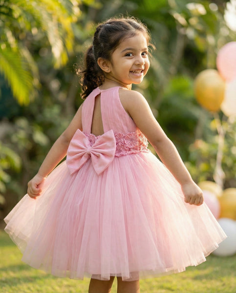 My darling, this dress is the blush of your laughter stitched into tulle — soft as a sigh. Around your waist, the flowers bloom like the ones you pick with delight, each petal a memory of play and wonder. The bow at your back is my quiet wish: that life always wraps you in love, even when I’m not near. You wore this on a day of balloons and cake, but its magic lingers far beyond — in every smile you turn over your shoulder, in every breeze that lifts your spirit. May you always feel this lightness, this joy, this you.