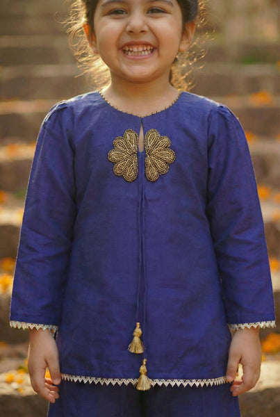 A beaded flower done by the finest hand embroiderers is the hero of this suit set with panelled sharara pants. Carrying forward our brand thought, comfort first & kinder planet, we created this subtle understated beauty in fine handwoven maheshwari silk Just what you need for all occassions Ibdian, weddings, festivals & Puja alike.Std shipping, 7-10 days. Dry Clean suggested.